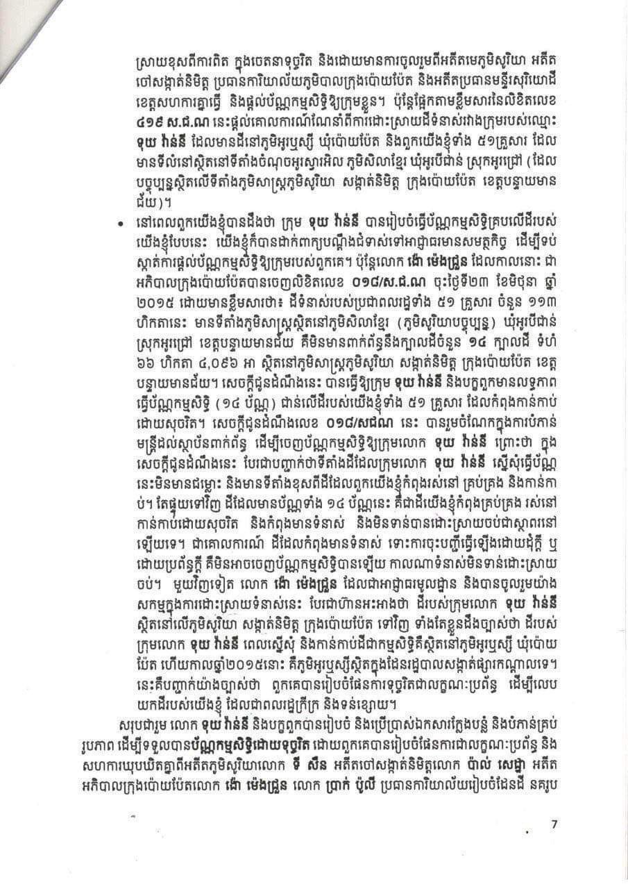 ប្រជាពលរដ្ឋ ប្តឹងអភិបាលរងខេត្តបន្ទាយមានជ័យ, អតីតមន្ត្រីជាន់ខ្ពស់នៃក្រុងប៉ោយប៉ែត និងបក្ខពួក រឿងលួចដី ១១៣ហិកតា ទៅតុលាការ