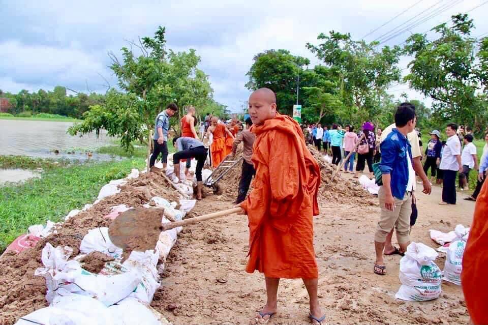 ស្វាយរៀង ៖ នាព្រឹកថ្ងៃទី១៦ ខែតុលា ឆ្នាំ២០២០ ឯកឧត្តម ម៉ែន វិបុល អភិបាលខេត្តស្វាយរៀង រួមនិងឯកឧត្ដម លោកជំទាវអភិបាលរងខេត្ត បានដឹកនាំមន្ត្រីរាជការសាលាខេត្ត កងកម្លាំងប្រដាប់អាវុធទាំងបី មន្ទីរ-អង្គភាពនានាជុំវិញខេត្ត អាជ្ញាធរក្រុង-សង្កាត់ ក្នុងក្រុងស្វាយរៀង និងមានការចូលរួមពីព្រះសង្ឃផងដែរ ធ្វើការរៀបចំបាវដីលើកជាទំនប់សម្រាប់ទប់ទឹក ចាប់ពីចំណុចទ្វារទឹកតាហោទៅខាងលិចដល់គល់ស្ពានពោធិ៍តាហោ ស្ថិតនៅភូមិក្បាលស្ពាន សង្កាត់ពោធិ៍តាហោ ក្រុងស្វាយរៀង ។