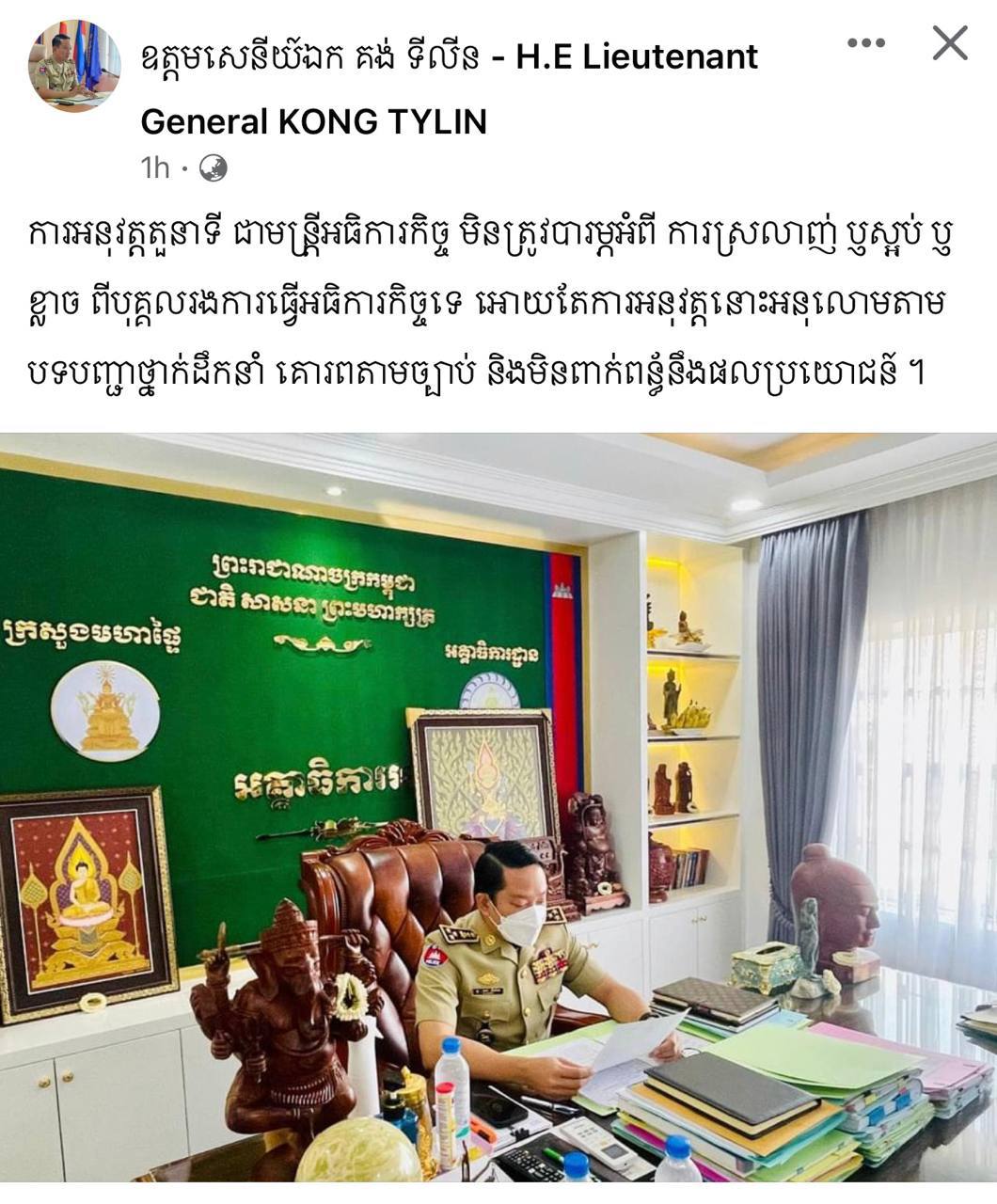 លោកឧត្តមសេនីយ៍ឯក គង់ ទីលីន បញ្ជាក់ថា៖ «ទី១ ខ្ញុំ! អត់មានទំនាក់ទំនងជាមួយក្រុមហ៊ុនហ្នឹង!ទាល់តែសោះ អត់សាច់ញាតិ ស្អីៗទាំងអស់។ ទី២ខ្ញុំ! ពុំដែលប្រើប្រាស់តួនាទី ភារកិច្ចរបស់ខ្ញុំ ទៅធ្វើអ្វីដែលខុសច្បាប់! គឺអត់ទេ។ ទី៣ បើក្រុមហ៊ុន ប្រើឈ្មោះខ្ញុំ មិនពិតខ្ញុំនឹងប្ដឹងក្រុមហ៊ុនគាត់តែម្ដង។»
