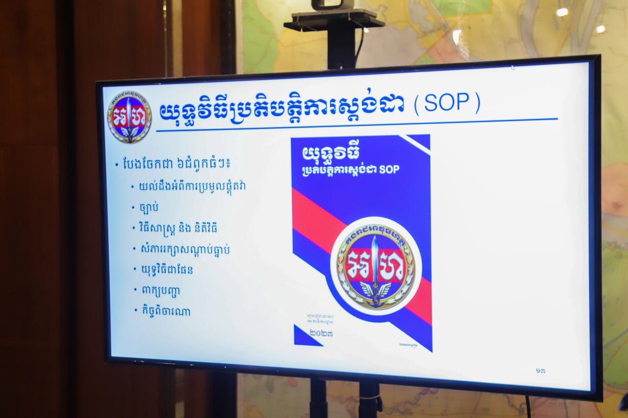 នាព្រឹកថ្ងៃទី១៩ ខែមិថុនា ឆ្នាំ២០២៣ លោកឧត្តមសេនីយ៍ឯក រ័ត្ន ស៊្រាង មេបញ្ជាការរង កងរាជអាវុធហត្ថលើផ្ទៃប្រទេស និងជាមេបញ្ជាការ កងរាជអាវុធហត្ថរាជធានីភ្នំពេញ បានបើកកិច្ចប្រជុំត្រួតពិនិត្យផែនការនិងយុទ្ធវិធីរក្សាសណ្តាប់ធ្នាប់ស្តង់ដាថ្មី ដើម្បីត្រៀមដាក់អនុវត្ត តាមកាលៈទេសៈជាក់ស្តែង ដែលផែនការនិងយុទ្ធវិធីទាំងនេះ ត្រូវបានរៀបចំចងក្រងឡើង ដោយលោក វរសេនីយ៍ឯក សៀ ទីន នាយសេនាធិការកងរាជអាវុធហត្ថរាជធានីភ្នំពេញ តាមរយៈការច្របាច់បញ្ចូលគ្នា នូវចំណេះដឹងដែលលោកវរសេនីយ៍ឯក សៀ ទីន បានរៀនសូត្រនៅសាលាបណ្ឌិតសភាយោធាអូស្ត្រាលី បូករួមនឹងបទពិសោធន៍ជាក់ស្តែងដែលធ្លាប់ជួបកន្លងមក។