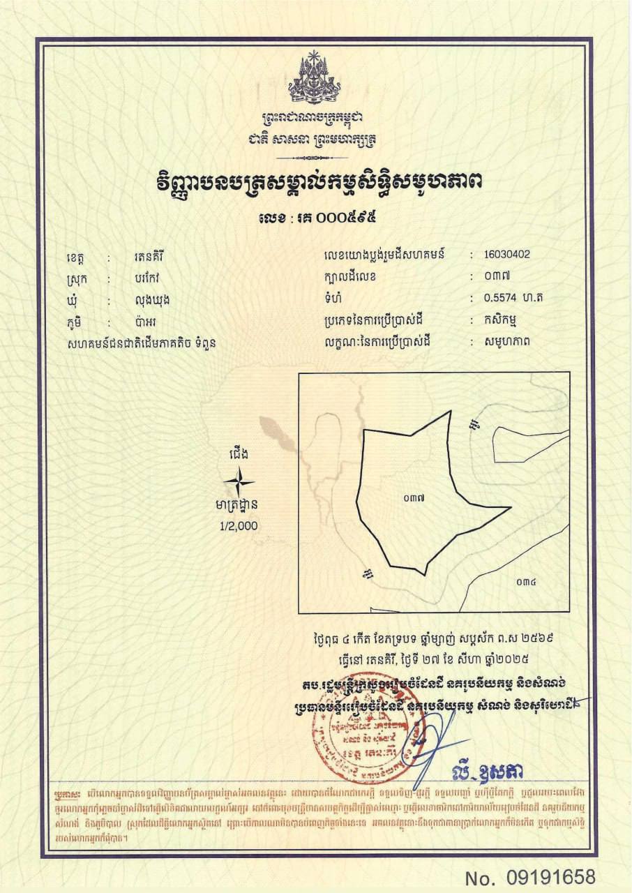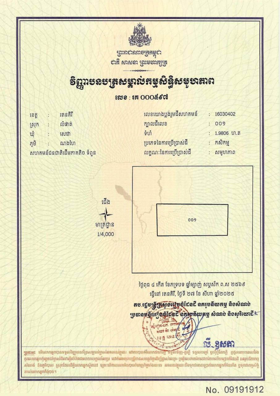ដីសហគមន៍ជនជាតិដើមភាគតិច ទំពួន ចំនួន០៥ក្បាលដីបន្ថែមក្នុងខេត្តរតនគិរីត្រូវបានចុះបញ្ជី