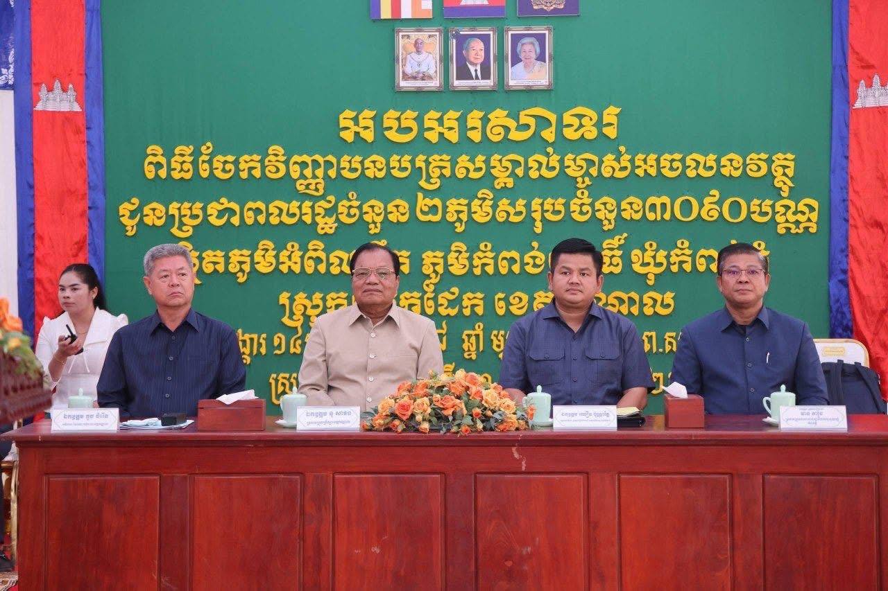 វិញ្ញាបនបត្រសម្គាល់ម្ចាស់អចលនវត្ថុចំនួន ៣,០៩០ បណ្ណ ត្រូវបានប្រគល់ជូនប្រជាពលរដ្ឋក្នុងភូមិអំពិលទឹក និងភូមិកំពង់ពោធិ៍ ឃុំកំពង់ភ្នំ ស្រុកលើកដែក ខេត្តកណ្ដាល។