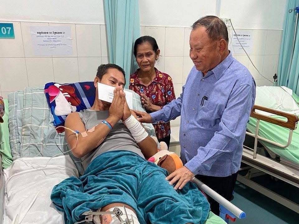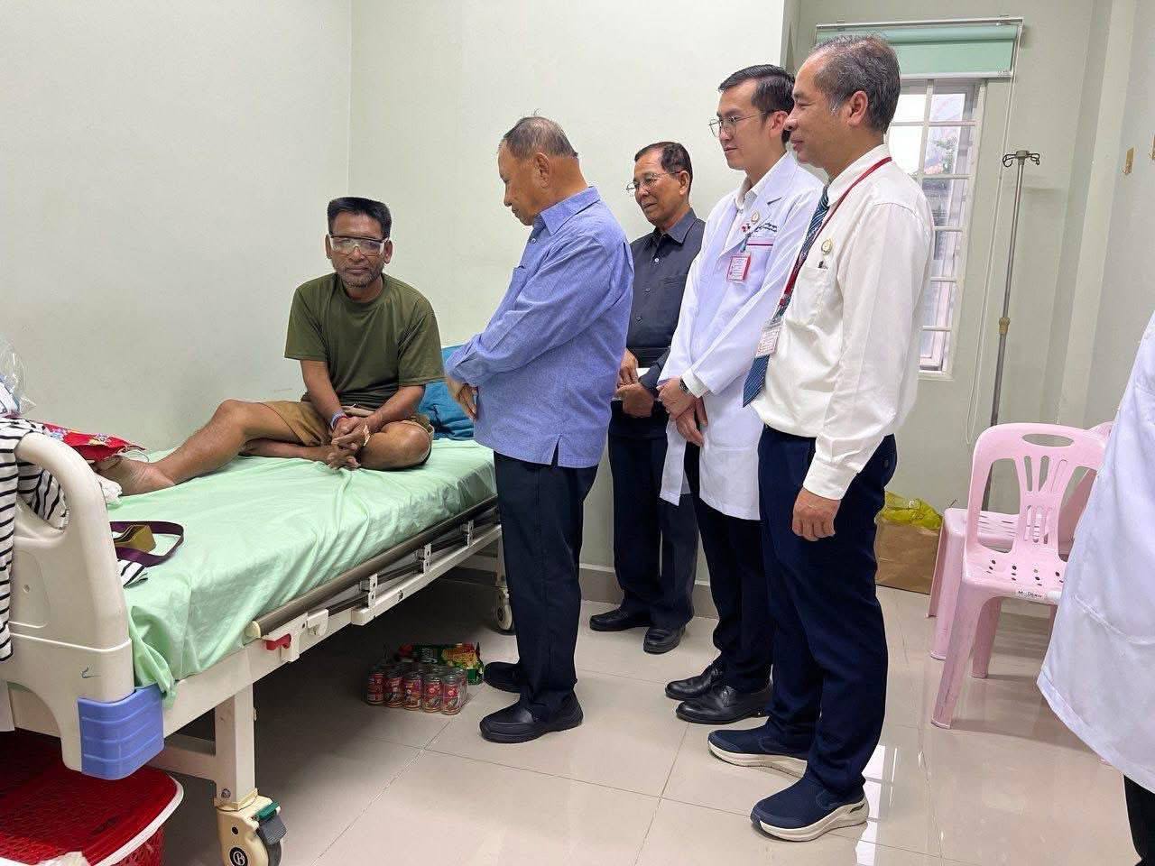 សម្តេចភក្តី សាយ ឈុំ អនុប្រធានគណបក្សប្រជាជនកម្ពុជា បានអញ្ជើញចុះសាកសួរសុខទុក្ខវីរកងទ័ពសមរភូមិមុខ មកពីទិសព្រះវិហារ និងឧត្តរមានជ័យ ចំនួន៤រូប ដែលរងរបួសដោយការវាយប្រហាររបស់កងទ័ពថៃឈ្លានពាន ដែលកំពុងសម្រាកព្យាបាលនៅមន្ទីរពេទ្យមិត្តភាពខ្មែរ-សូវៀត
