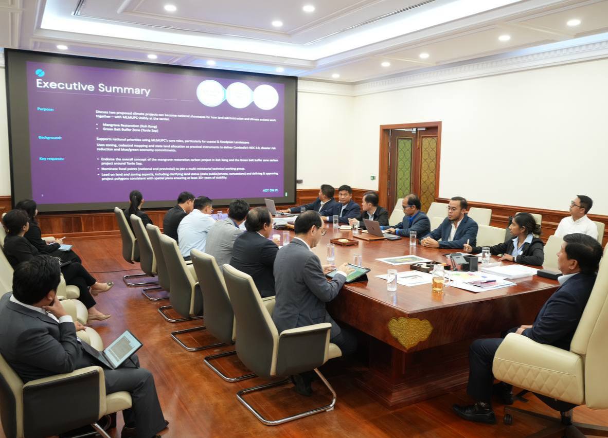 ក្រុមហ៊ុន ACT និងក្រសួងរៀបចំដែនដី នគរូបនីយកម្ម និងសំណង់ បានជួបពិភាក្សាអំពីលទ្ធភាពនៃការអនុវត្តគម្រោងអភិវឌ្ឍខឿនសេដ្ឋកិច្ច (គោលនយោបាយសម្បទានដើម្បីសេដ្ឋកិច្ច និងសង្គម) នៅតាមបណ្តាសហគមន៍តំបន់ឆ្នេរ និងសហគមន៍នៅក្នុងតំបន់បឹងទន្លេសាប