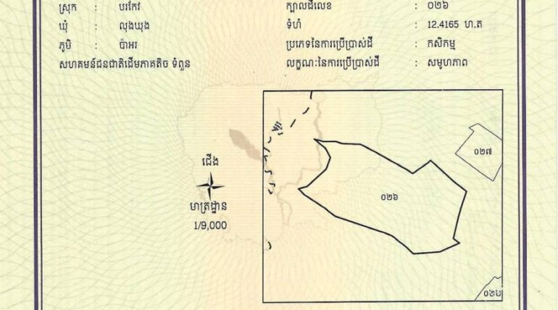 ដីសហគមន៍ជនជាតិដើមភាគតិច ទំពួន ចំនួន០៥ក្បាលដីបន្ថែមទៀត ក្នុងស្រុកបរកែវ ខេត្តរតនគិរីត្រូវបានចុះបញ្ជី