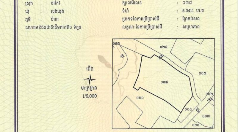 ដីសហគមន៍ជនជាតិដើមភាគតិច ទំពួន ចំនួន០៥ក្បាលដីបន្ថែមក្នុងខេត្តរតនគិរីត្រូវបានចុះបញ្ជី